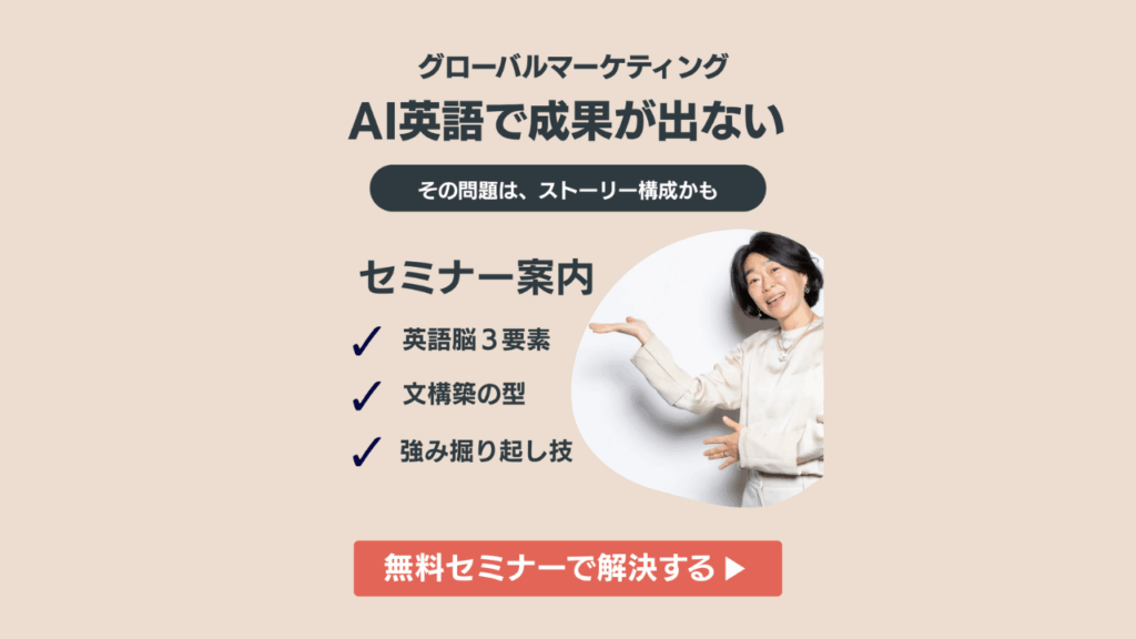 - テーマ: AI翻訳の英語で、なぜ問い合わせが来ないのか? 英語圏の顧客を「その気」にさせる3文の魔法:ABTフレームワーク活用術
